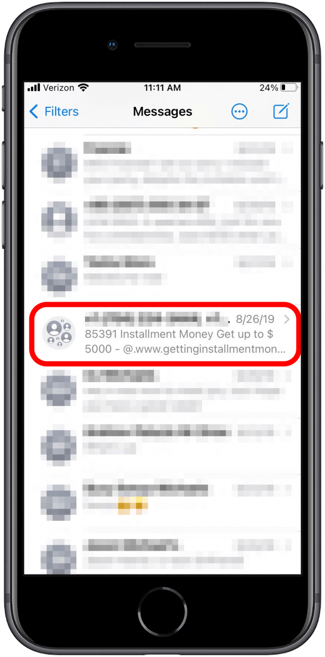 - Open the text message without tapping on any links in the body of the message, then tap on the sender's phone number.